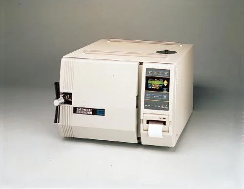 An example of an autoclave. Note the secure screw-latch on the left side to withstand high pressure.