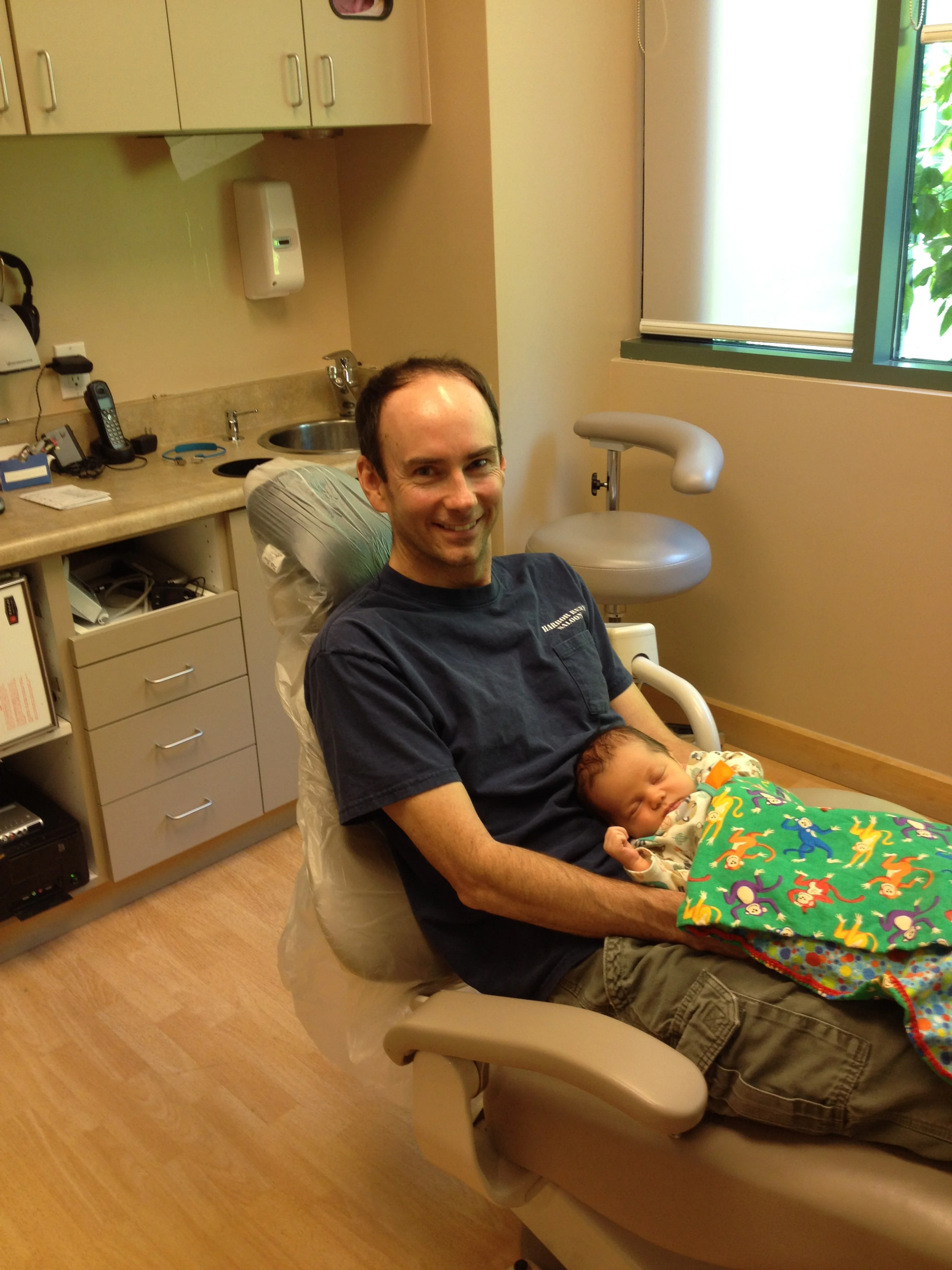 This week, Dr. Kari's husband Erik stopped by the office for a cleaning and brought baby Duke along. Dad did great, but as you can see the appointment wore Duke out! We hope you all find some time to spend with your loved ones this weekend. Cherish these moments!